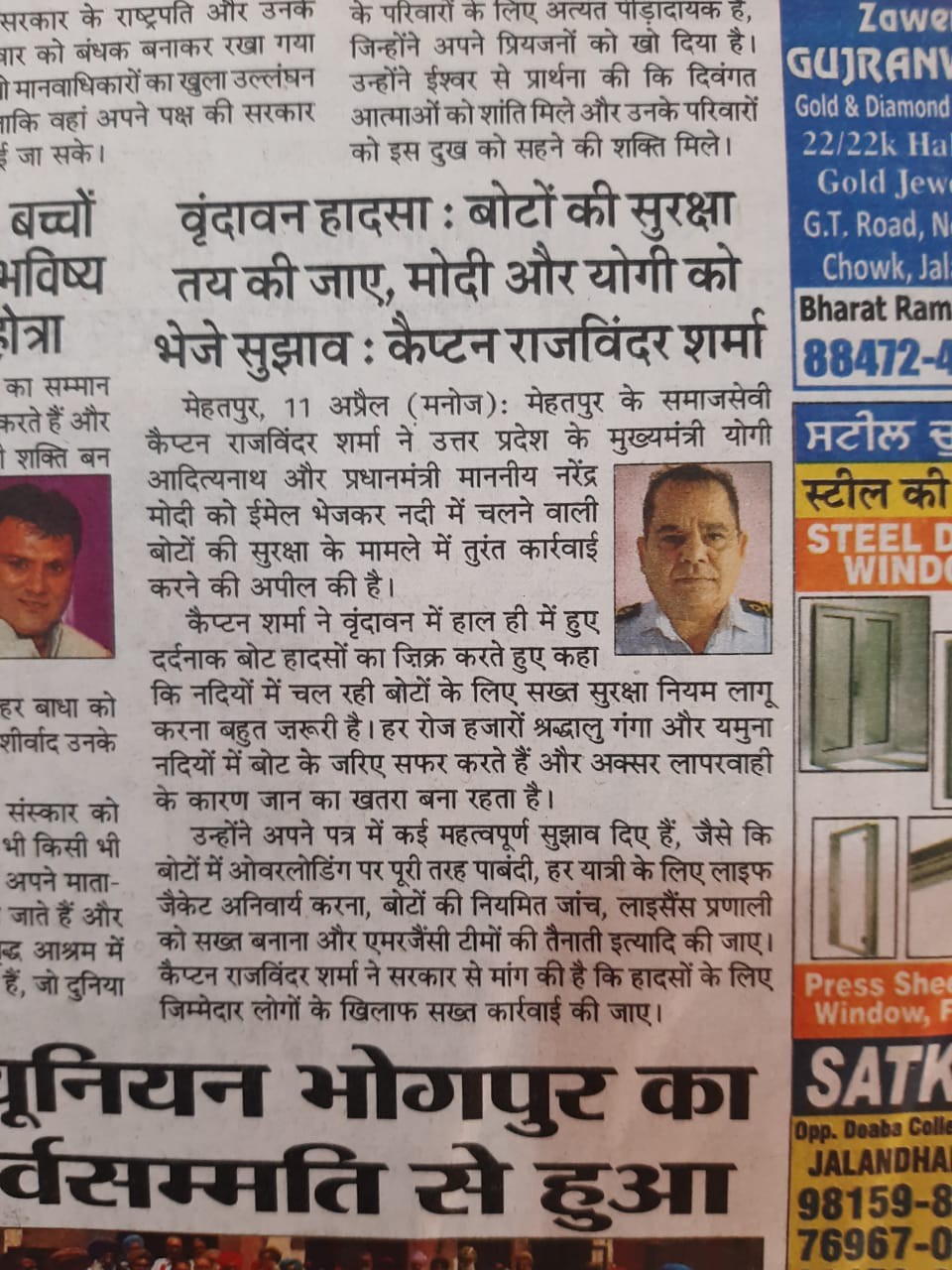 I humbly wish to draw your attention towards the urgent need to enforce strict safety regulations for river transport and boating activities across the country
