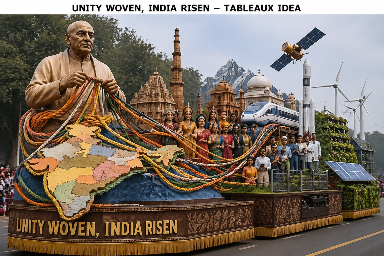 "Unity woven ,India risen" portrays India as a fabric woven through diversity, harmony, and shared destiny, inspired by sardar Patel's vision.