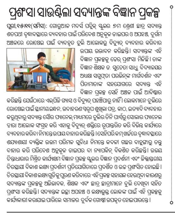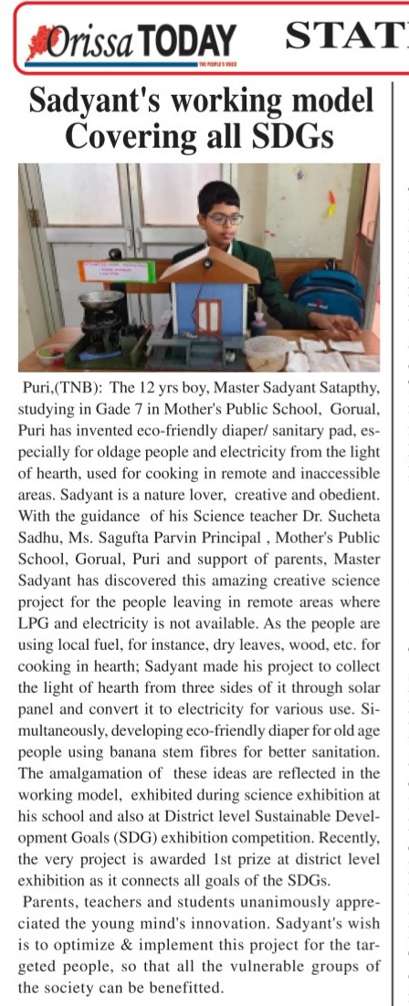 I have developed eco-friendly freindly diaper using banana stem for old age people who are bed ridden and generating electricity from three sides of hearth used by remote out reach rural areas and where there is no electricity available. The working model got first prize in district level SDG exhibition. The work covers all Sustainable Development Goals itself.