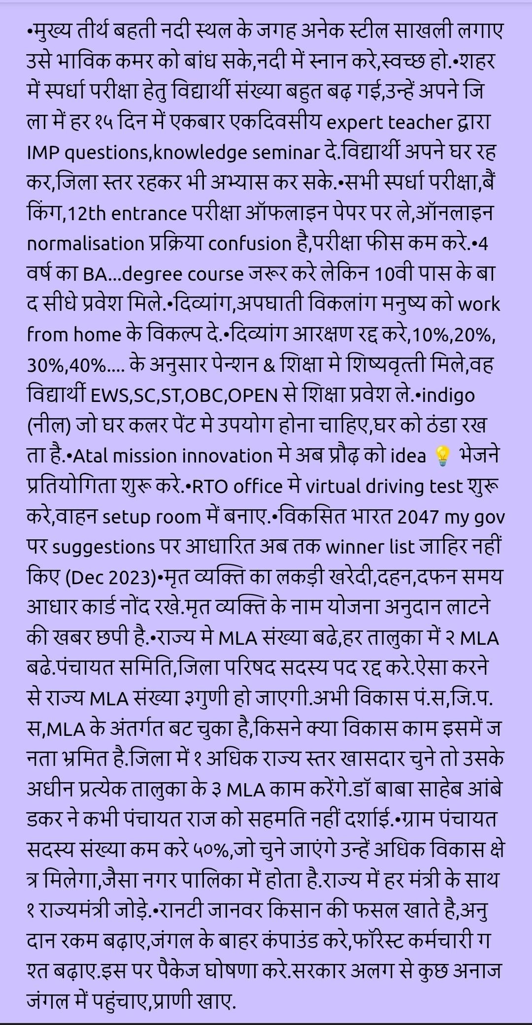 Respected Sir, I am an Ex Junior Warrant Officer of Air Force and currently serving in Central Bank of India. Our country is progressing in better speed in comparison to earlier Govt. We are proud of you and your leadership. In your guidance country has achieved many laurels in different fields.I want to share my thoughts with you, which may be beneficial to our country. Since mobile data rates become cheaper our Next Zen is wasting valuable time seeing reels on social media.Let it be students, employees, Farmers, housewives and all. We are wasting our valuable time. As we know, it is very difficult to control self and others to see reels. Once it starts, difficult to stop. It is like a addiction like alcohal, smok or tea. If it is not controlled, it will kill our future generations. It already killed sports, study, walking, giving time with family and friends. Sir, it is requested, to curtail and regulated time of reel in India to 30 second on all social media platforms. Pls save Genz