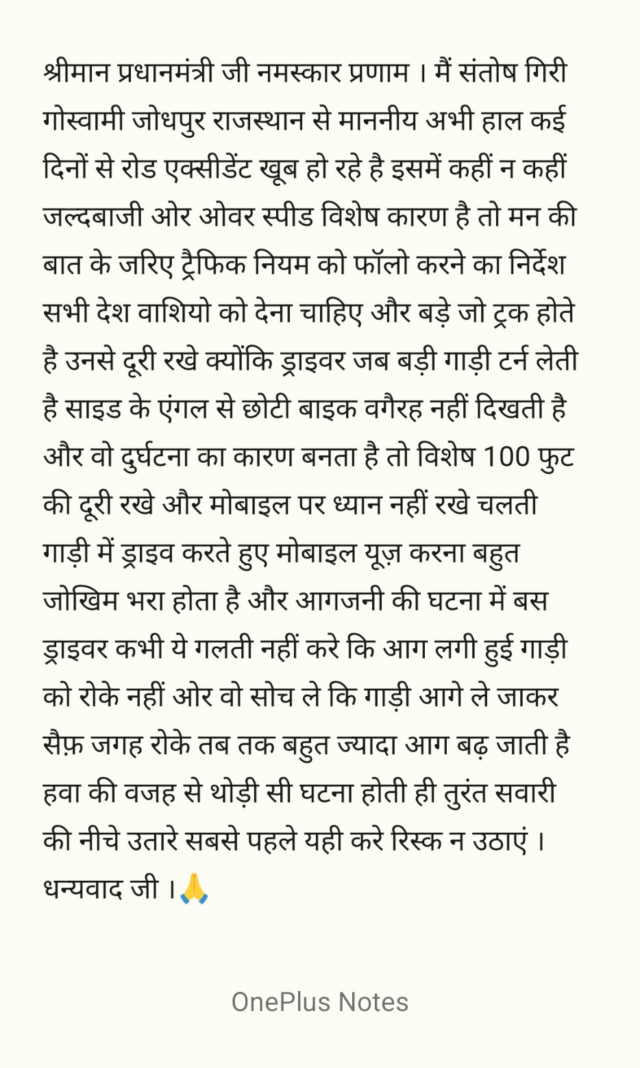 माननीय प्रधानमंत्री जी,