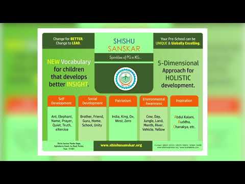 Preschooling, the most useful period in human life is the most neglected area in Education. No major innovation has been seen in the past 100 years. Addressing the drawbacks, we have created a fresh pedagogy. www.shishusanskar.org We have not moved ahead of negatively toned rhymes. Humpty falls & breaks apart. Jack & Jill & London Bridge fall down. We have created indigenous positive WISDOM RHYMES deriving wisdom from Bharat's heritage and our cultural identity. Kids thus develop Sanskar/Values.
